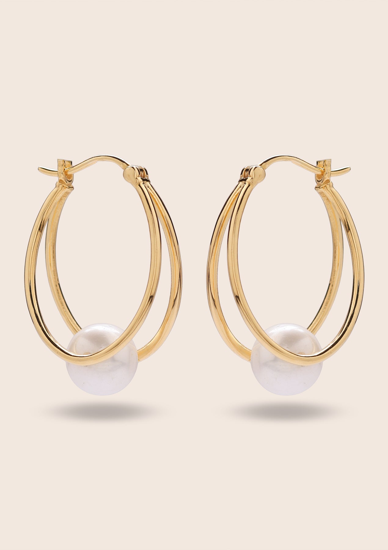 A sculptural take on everyone's favourite classic pearls. The Aawari Hug Hoops have gold structures that wrap around a single pearl, like a quiet embrace. Perfect for when you're seeking comfort, with a touch of glam.